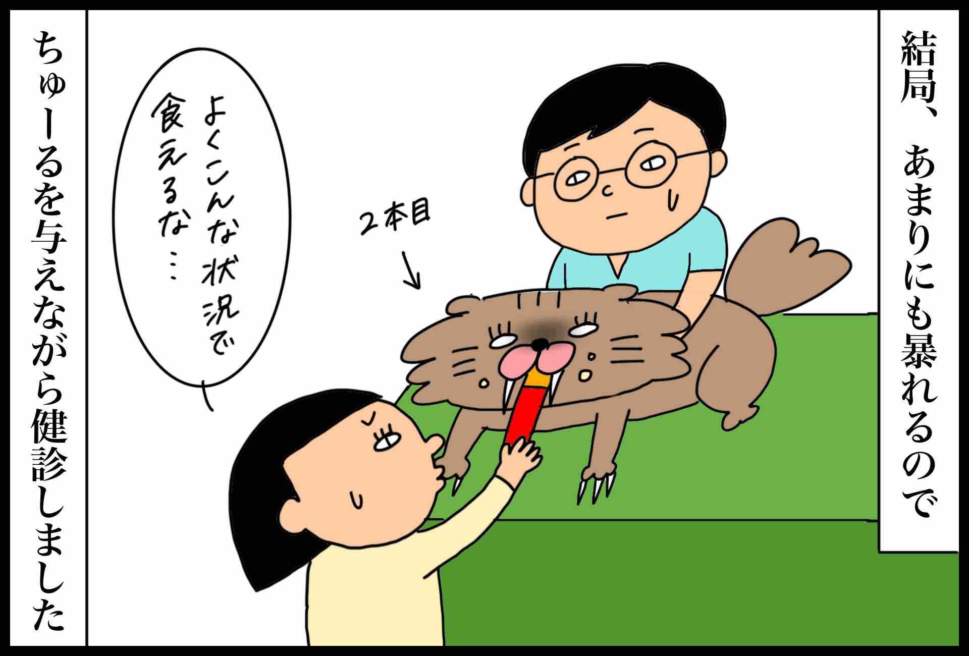 みその健康診断 2024年11月04日 年一の健康診断。今回も予想通り肥満でした。普段、みそしおにはカリカリのごはん以外おやつなどあまり与えていないので、先生たちに抑えられながら歯を剥き出しにして全力でちゅーるを食べていました。そして相変わらずみそよりも怯えるしお。この後夜まで洗濯機の下から出て来ませんでした。そろそろ本気でみそしおの肥満を改善しなければいけないので、1日のごはんの量をそれぞれ60gから55gに減らしました。物足りなそうにしているみそしおを見て、ごはんをもっとあげたくなってしまいますが必死に我慢しています。。。空っぽのお皿のそばから離れないみそ。ごはん大盛りあげたい… < 前の記事次の記事 > コメント コメントフォーム 名前 コメント 記事の評価 リセット リセット 顔 星 情報を記憶 コメントを投稿する